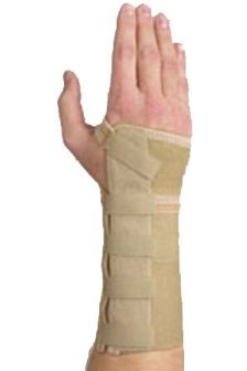 The Med Spec Wrist Lacer delivers premium support in a popular 8" length model. It features a removable, customizable palmar stay on the bottom that's contoured to place your wrist in a functional position for support. The top stay is stitched inside to help maintain your wrist in a properly immobilized position. The Med Spec Wrist Lacer brace features perforated suede on the outside laminated to polypropylene felt for greater comfort and durability. The single pull lacer design makes it one of the easiest models to apply with one hand. Patients and physicians appreciate the made in the USA quality and attention to detail this product delivers. It's well suited for treating everything from wrist sprains, and tendonitis to recovery from wrist surgery.