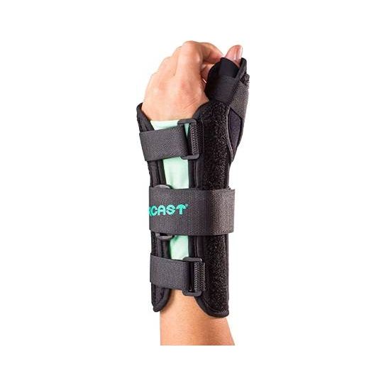 Aircast's A2 Wrist Brace with Thumb Spica provides support for wrist and thumb injuries, sprains, muscle strains, and more; ideal for thumb injuries, GameKeeper's Thumb, de Quervain syndrome symptoms.