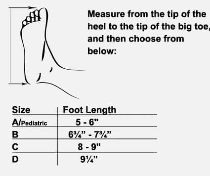 | Size | Tip of Heel to Tip of Big Toe | Product # |