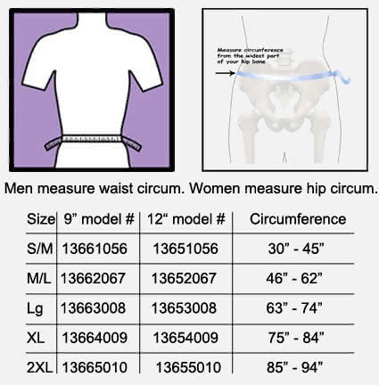 DeRoyal Sized Abdominal Binders are used post-surgically by patients following liposuction, gastroplasty, abdominoplasty, cesarean section or hysterectomy. They are also useful for muscle strain or soreness in the abdominal region. The product is available in either a 9" or a 12" width as seen in the photo. DeRoyal Sized Abdominal Binder models feature a unisex, latex-free design that provides an adjustable fit with their hook and loop closures.
