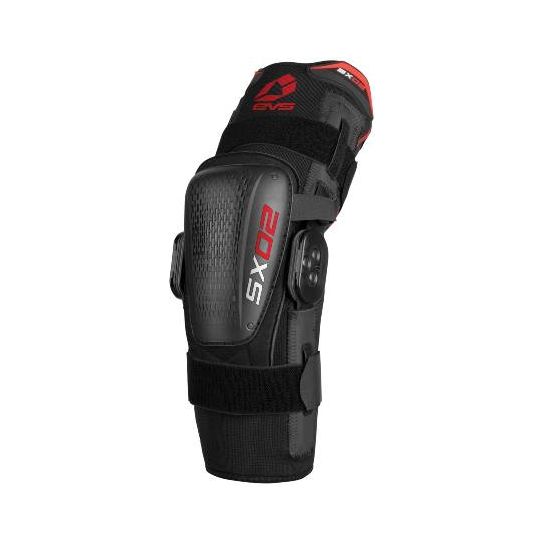 The EVS SX02 provides riders with a higher level of protection with some key upgrades to this model's hinge design. The SX02 offers riders the capability to adjust and limit the amount of bending (flexion) or straightening (extension) with an easy to use dial in that provides 15 degree incremental settings. The product also features high-tech aircraft aluminum medical grade hinges as an upgrade over the standard SX01 model.