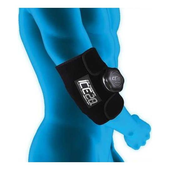 The ICE20 Elbow/Small Knee provides ice and compression to help reduce pain and inflammation caused by common elbow injuries. The neoprene wrap features adjustable velcro straps for a precise fit and a large 9" ice bag for effective elbow coverage.