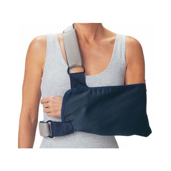 Procare Shoulder Immobilizer With Foam Straps is a cotton/poly sling designed to immobilize the arm and the shoulder.The Procare Shoulder Immobilizer with Foam Straps sling is constructed with soft cotton/poly for patient comfort. It's designed to exert upward pressure and immobilize the arm and the shoulder. The waist and shoulder straps are made of a plush foam laminate with contact closure. Fits right or left arm.